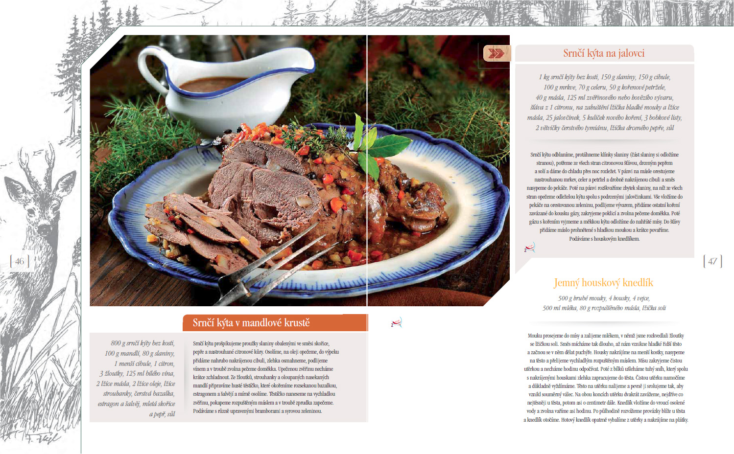 Tato kuchařská kniha obsahuje osvědčené a vyzkoušené recepty na přípravu předkrmů, polévek a hlavních chodů ze zvěřiny, doplněné velkoformátovými barevnými fotografiemi těchto pokrmů. V úvodní kapitole se čtenář dozví o základní kuchyňské úpravě zvěřiny, v další dostane od sommeliéra doporučení na vína vhodná ke zvěřině. Klíčová kapitola Hlavní chody je členěna podle druhů zvěře, z nichž zvěřina pochází (srnčí, divočák, jelen, daněk, muflon, zajíc, bažant, kachna divoká a ostatní druhy zvěře), a k většině pokrmů je přidán recept na přílohu a doporučený druh vína. Na závěr nechybí ani krátká kapitola Dezerty, takže s pomocí této kuchařky lze v případě potřeby bez problémů sestavit několik variant slavnostního zvěřinového menu o čtyřech chodech.